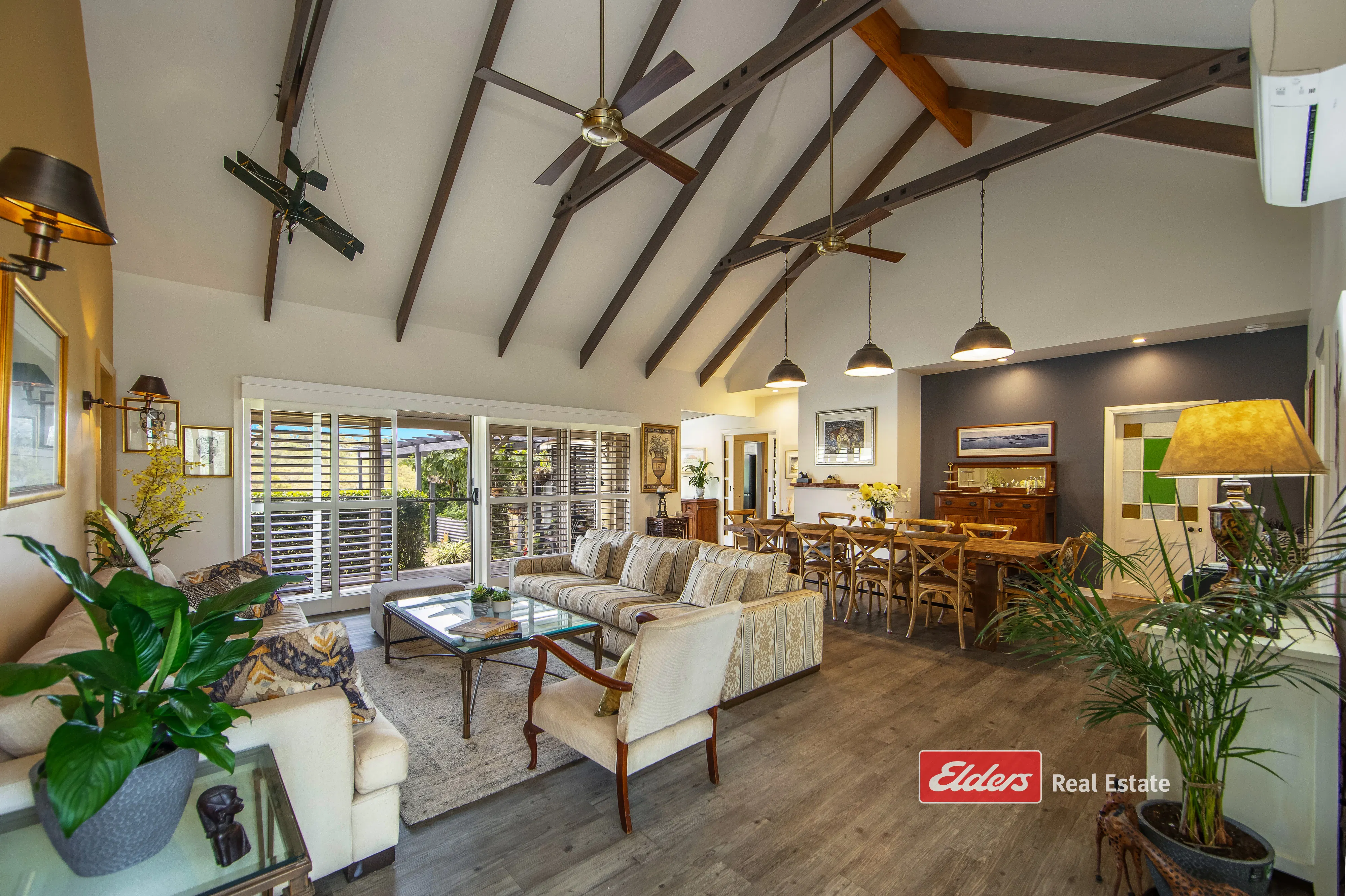 - Casual living and dining to western wing with raked ceilings